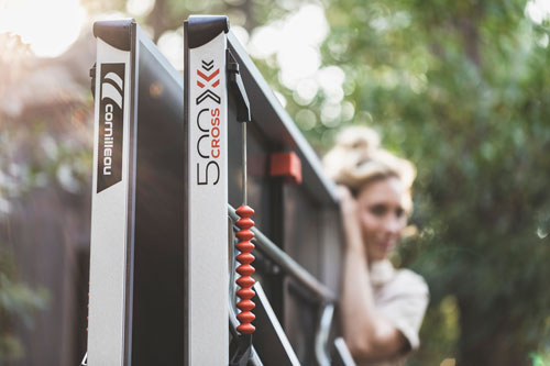 Velika dvojna kolesa na mizah Cornilleau ponujajo številne prednosti. Z lahkoto premagajo ovire, gladko potujejo po vseh vrstah terena in so izjemno okretni, enostavni za manevriranje in stabilni v nekaterih zapletenih situacijah, kot je zavijanje okrog tesnega kota, da dosežete idealno mesto za postavitev vaše mize.