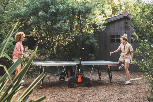 mm debelo igralno površino iz smolnatega laminata, miza za namizni tenis 500X omogoča igranje tudi najbolj zahtevnim igralcem, ki tako končno ne bodo več zapuščali igranja na zunanjih mizah.